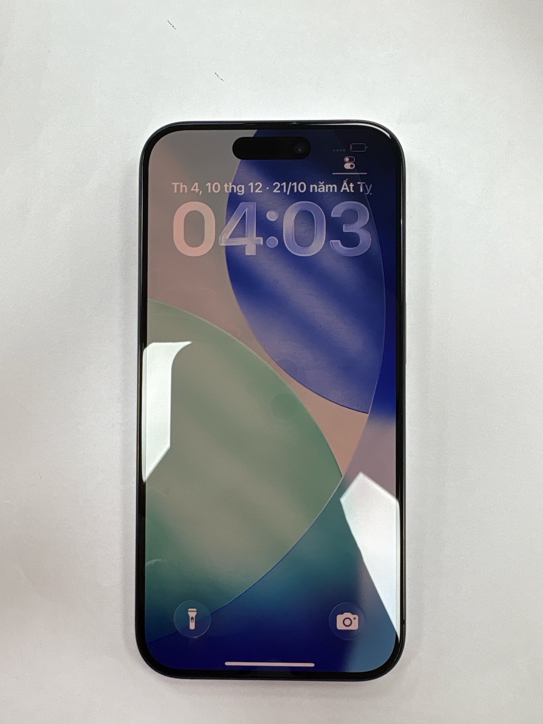 Dynamic Island tiếp tục phát huy sự tiện dụng, biến camera trước thành trung tâm thông báo. Viền màn hình cũng được làm mỏng hơn một chút so với thế hệ trước, tối ưu hóa không gian hiển thị.