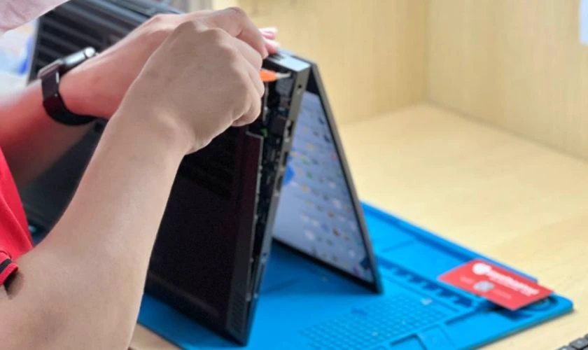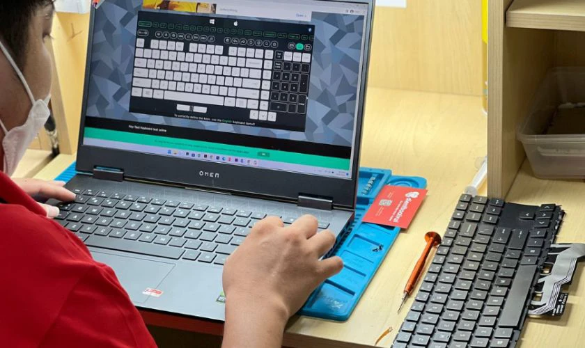 Sau khi khách đồng ý, kỹ thuật viên tiến hành tháo laptop bằng dụng cụ chuyên dụng. Bàn phím lỗi được gỡ bỏ và thay bằng bàn phím mới chính hãng hoặc linh kiện tương thích chất lượng cao theo đúng thỏa thuận với khách hàng.